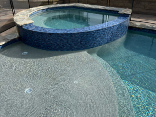 Silver Pearl Sandstone typically imparts a shimmering and inviting aquamarine or light blue water color to your pool. This color palette beautifully complements the elegance of the silver pearl highlights in the finish, creating a serene and inviting aquatic environment for your enjoyment.
